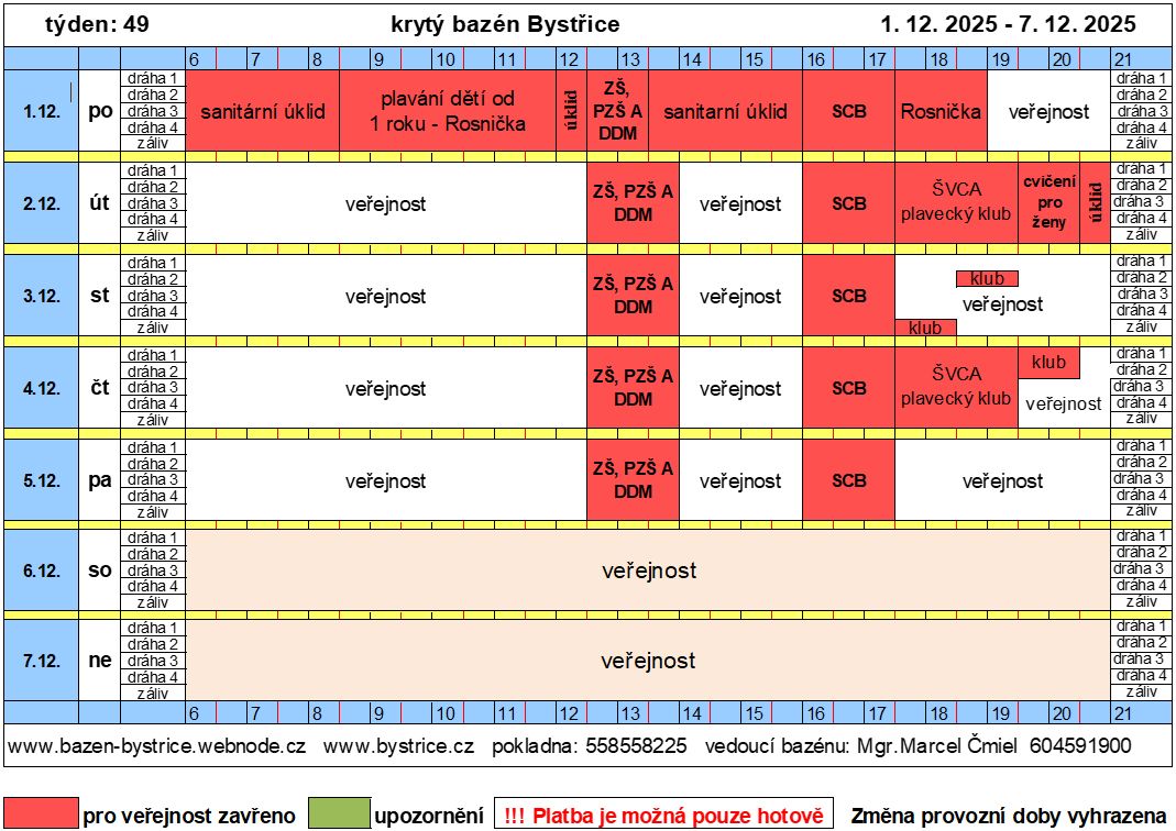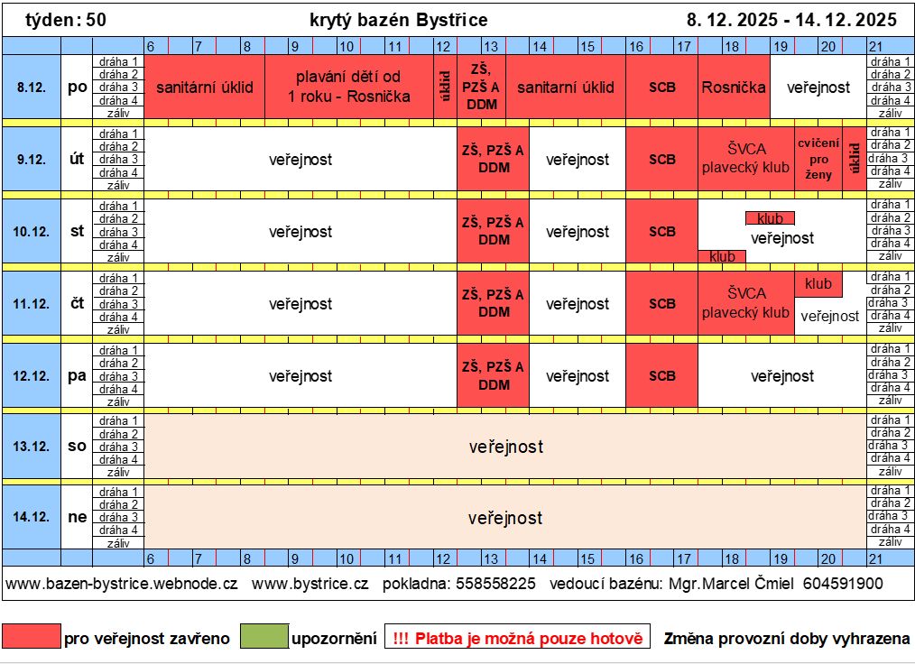 vedoucí bazénu: Mgr. Marcel Čmiel 604 591 900 pokladna bazénu: 558 558 225
